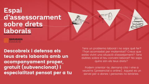A Barabara Educació reprenem el servei d’assessorament sobre drets laborals, un espai d’orientació personalitzat, gratuït i especialitzat dirigit a dones i persones no binàries que busquen informació, clarificació i estratègies per defensar els seus drets a l’entorn laboral. El món del treball pot ser complex i sovint necessitem suport per entendre què ens empara legalment. […]