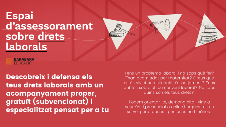 A Barabara Educació reprenem el servei d’assessorament sobre drets laborals, un espai d’orientació personalitzat, gratuït i especialitzat dirigit a dones i persones no binàries que busquen informació, clarificació i estratègies per defensar els seus drets a l’entorn laboral.
